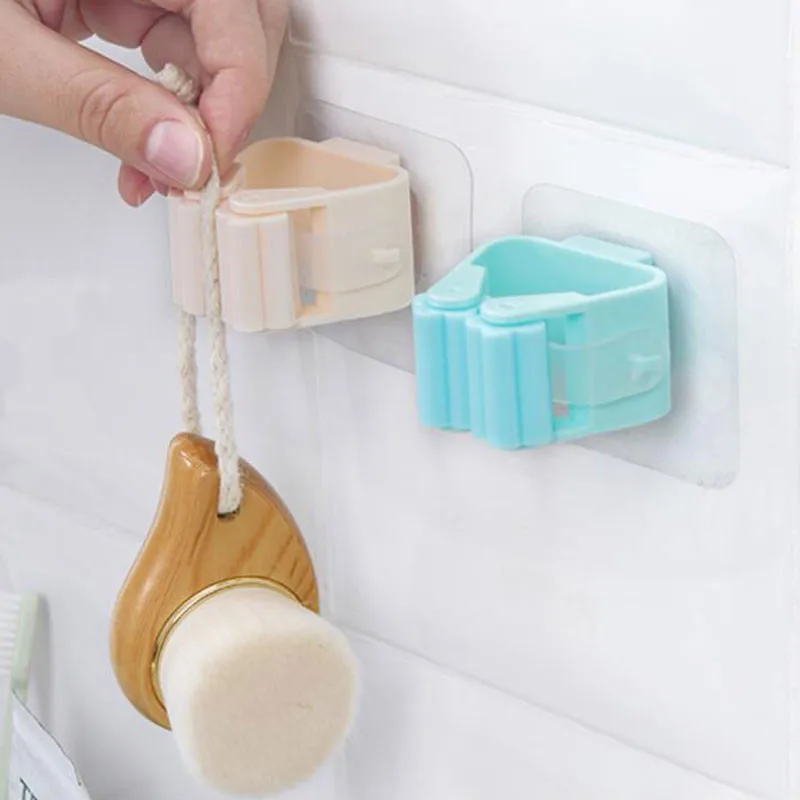 Multifunctional 2 in1 Seamless Adhesive Mop Broom Towel Storage Holder Rack Self Adhesive Bathroom Hook Clip Gripper